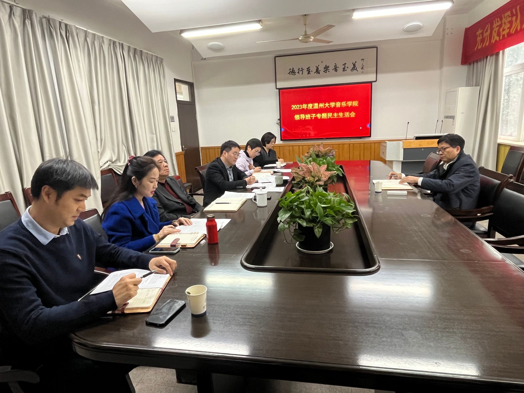 于2024年1月19日下午在201室召开2023年度学院领导班子专题民主生活会。学校党委副书记庄兴忠参加本次会议,学院领导班子全体出席会议,会议由学院党委书记朱启鑫主持。
