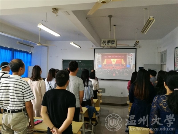 党总支书记方建敏、全体教师、全体研究生党员共同参与观看了本次十九大开幕式。