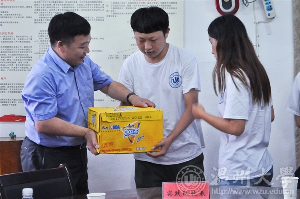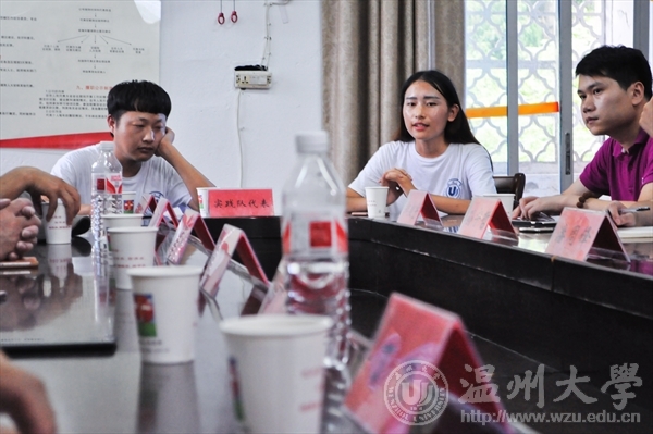 温州大学党委副书记赵敏和同学们亲切交流,他对前来的当地领导致以真诚的谢意,对于“乐拍乐清乐拍乐美”暑期社会实践队取得的成效给予了充分肯定。赵敏书记强调“现在的大学生缺乏与社会接触的机会,从大学校园到迈入社会应该做一个良好的衔接,每位同学都要具有独当一面的心理素质,而暑期社会实践队则提供了一个很好的锻炼机会,是就业之前很好的体验。”他告诫实践队员们,在实践的过程中,一定要注意做好防暑防晒准备,注意安全,队长要负责监督,不能私自游泳、私自离开队伍……座谈会最后,赵敏书记代表学校向实践团送上了慰问品,并和大家合影7月14日下午,温州大学党委副书记赵敏在校团委书记屠霁霞、成人网站