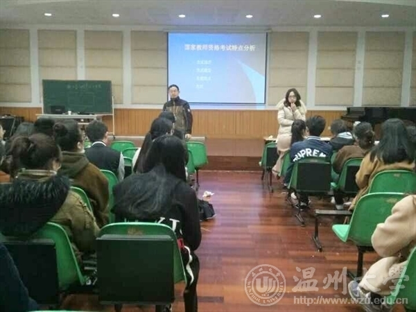 在音乐楼201室开展了讲座《国家教师资格考试特点分析》,本次讲座由山香教育教师招聘考试培训中心首席专家黄希尧讲解,学生们开讲前络绎不绝,直至座无虚席。