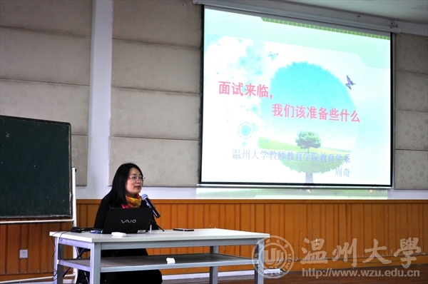 在音乐楼201室开展了讲座《结构化面试应对策略》。本次讲座由温州大学教师教育学院教育学周奇老师,为学生讲解面试来临,我们该准备些什么。