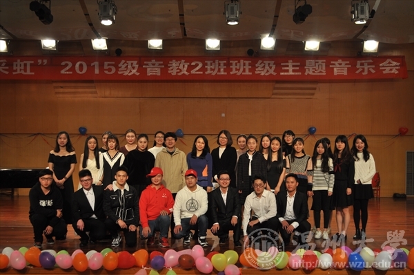 2016年12月13日下午13:30成人网站 在温州大学北校天瑞音乐厅迎来了第十四周教学实践周的第三场班级舞台音乐会――15音教2班“采虹”舞台音乐会。本次音乐会由严伊娴老师指导,全体教师出席,15音教2班全体学生以及特邀嘉宾出演。