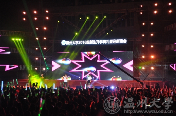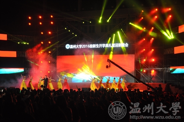 2016年9月24日晚6:30温州大学2016级新生开学典礼暨迎新晚会在南校操场于新生们的热烈掌声中拉开帷幕。温州大学校长、各学院领导与16级温大新生参与本次开学典礼暨迎新晚会。首先由温州大学校长李校堃以及学校领导、校友讲话,对温大新生的加入表示欢迎,送去鼓舞与期望。