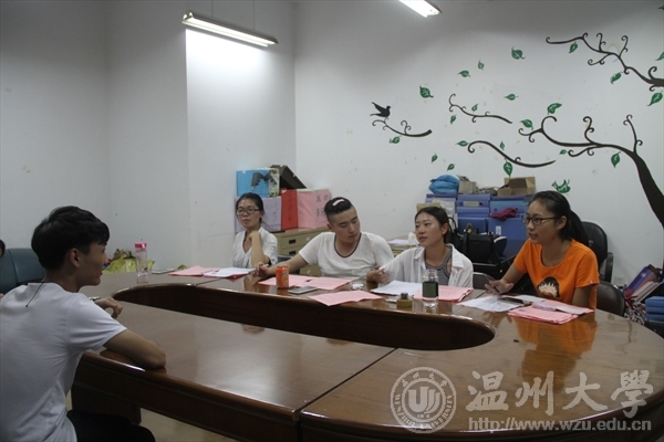 为给2016届新生提供一个锻炼自我,显示自我,提升自我的平台,同时也为学生干部队伍充实优秀人才,确保学生工作可持续的良性发展。2016年9月17日,温州大学团委学生会在温州大学大学生活动中心A座一楼车库进行招新报名,得到了2016届新生的积极响应。9月19日学生会进行招新面试。