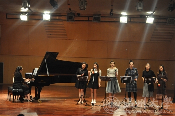 20164271830,公开课堂第五讲《回味童年》歌曲编配讲演音乐会在温州大学天瑞音乐厅正式开讲。本次音乐公开课堂由阮辛怡老师主讲。童年的记忆虽然遥远,但那熟悉的旋律仍旧能穿越时间的海洋再次回想在耳边。