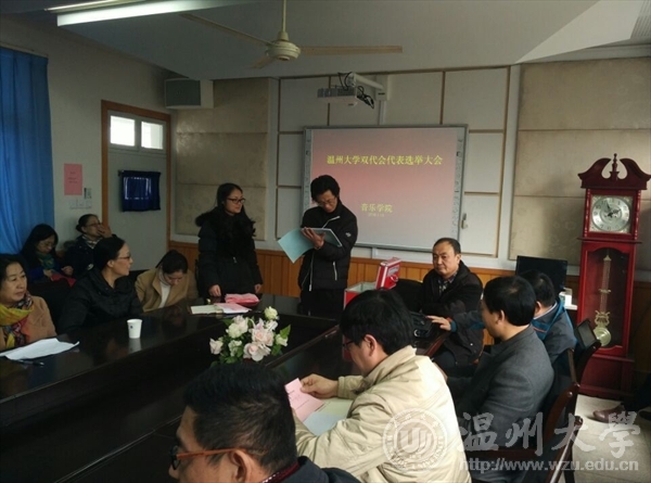 本次会议由党总支书记刘青松主持。第一个议题是选举温州大学第四届一次“双代会”代表,全院教职工以不记名的方式民主选举出刘玉亭老师、赵玉卿教授、叶文辉老师、王志毅老师和王文韬老师为成人网站