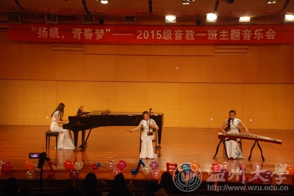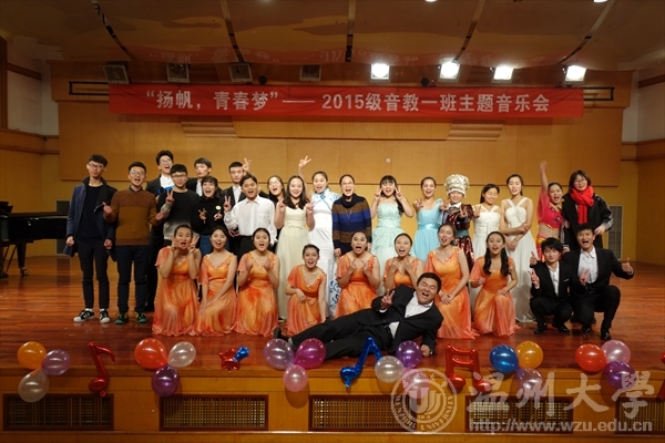 2015年12月14日晚7点整,15音教一班的同学们在温州大学北校天瑞音乐厅举办了他们大学生涯第一场主题音乐会——扬帆 青春梦