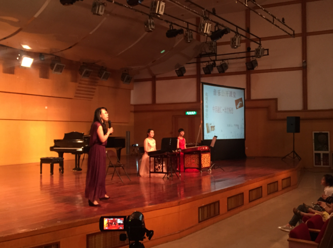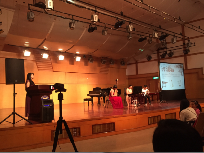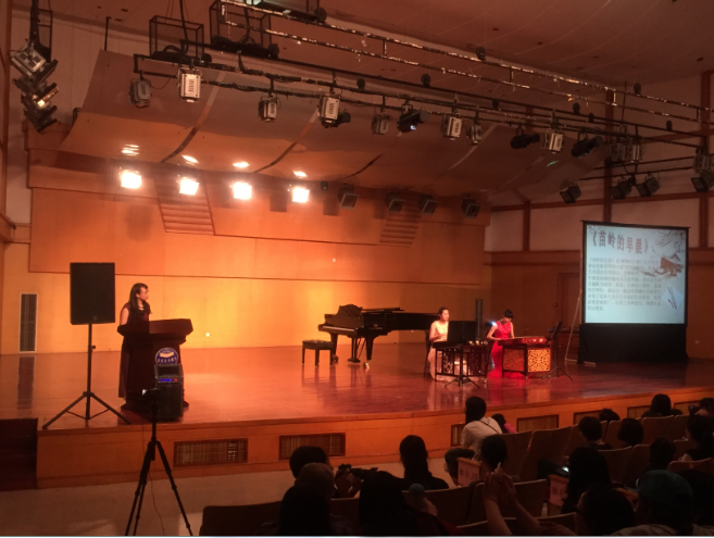 此次公开课的主题是中西融汇、丝竹畅想。课堂的开始就是一首热情的掀起你的盖头来,由二胡、琵琶和扬琴共同演奏,是观众对这次公开课充满了兴趣。紧接着是严伊娴老师的亮相,她给我们介绍了杨琴的来历,扬琴原系古波斯乐器,十四世纪盛行于欧洲。明代万历八年专入中国,最初流行于广东沿海一带,后来逐渐遍及内地。经过历代艺师的不断改进。成为自身独具中华民族艺术特色的中国乐器。五十年代后,音乐工作者和乐器制作师密切合作,在保留传统和“横五纵二”音位规律的基础上,相继研制出三种类型的改良扬琴:1.变音扬琴。它通过变化音阶中的半音关系进行转调。有“大、小转调杨琴”、“转盘转调杨琴”、“扳键转调扬琴”、“401型杨琴”和“401改进型扬琴”、“蝶式扬琴”等。 经过反复实践,现阶段我国各文艺团体的艺术院校广泛采用的是“401型扬琴”及其改进型和“501型扬琴”。“红旗十二平均律扬琴”、“八一型扬琴”和“蝶式扬琴”亦在部分省市生根开花。 中国扬琴从型制、结构、音列、音色到制作工艺已逐步进入科学和规范化的轨道,日臻完善。介绍完杨琴带来第二个节目:美丽的非洲。由严伊娴老师采用非洲鼓为我们演奏,音乐进行中,观众仿佛来到了非洲人民载歌载舞的地方,体会非洲人民的欢乐与热情。第三个节目是杨琴版本的土耳其进行曲,这首曲子的钢琴演奏,观众耳熟能详,但是杨琴版本的却让人耳目一新。第四个节目:在水一方。由老师钢琴演奏,《在水一方》由琼瑶填词,林家庆谱曲,这首歌是琼瑶1975年时为她的电影《在水一方》谱写的同名主题歌,由江蕾原唱。1980年,邓丽君翻唱了这首歌并将其收录于同名专辑《在水一方》中,从此,《在水一方》红透了大江南北。曲调婉转悠扬,老师的弹奏更是柔情似水,体现了歌词中塑造的流水般的意境。第五个节目:别亦难。《无题·相见时难别亦难》是一首唐代诗人李商隐以男女离别为题材的爱情诗。描写了一对情人离别的痛苦和别后的思念,抒发了无比真挚的相思离别之情,具有浓郁的伤感色彩,极写凄怨之深、哀婉之痛,并借神话传说表达了对心中恋人的无比挚爱、深切思念。杨琴与钢琴的配合,是观众融入了诗人切身的人生感受。第六个节目:瑶族舞曲,由成人网站