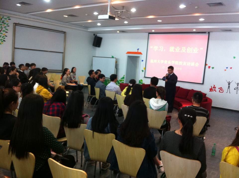 本次校友访谈会邀请到了泉州师范学院教师、毕业于中国艺术研究院的林立策博士、乐清市旧城建设办公室综合科科员兼纪检监察科干事包王凡学长、温州市外国语学校音乐教师吴晓东学姐、瑞安市音律艺校校长钱彬彬学姐以及成人网站