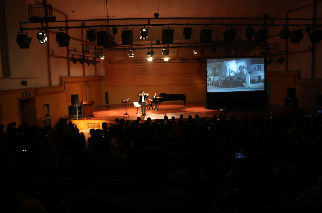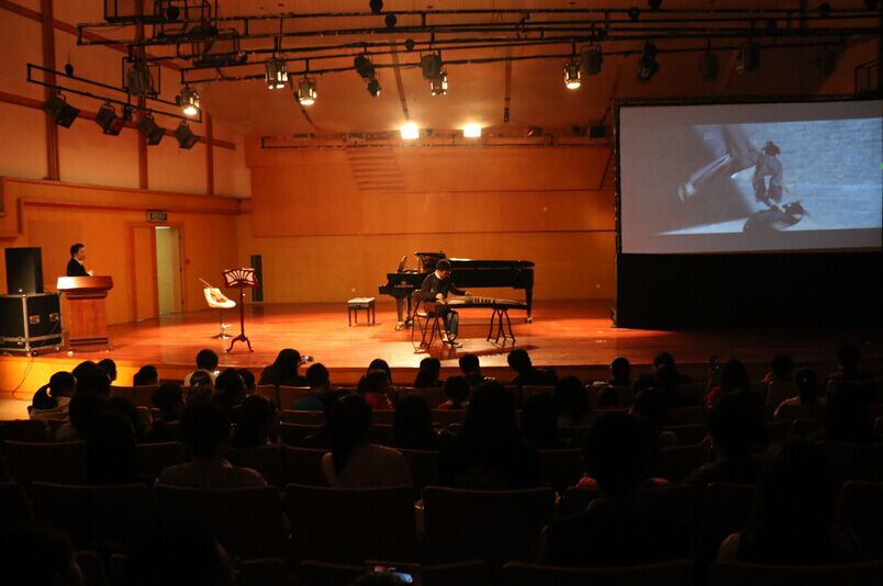 2015年3月18日晚18:30分,在温州大学北校区天瑞音乐厅举行了一场别开生面的“电影琴声”讲演音乐会,本次音乐会由温州大学胡锦超老师主讲,也是音乐公开课堂系列活动中的第一讲,演出开始前,除了120名参加这门选修课的同学之外,观众席已被众多慕名而来的老师、同学、校友以及社会人士占满,现场座无虚席。
