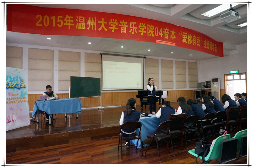 此次主题同学会于下午2点开始,主要由教研活动、意见建议座谈会、拍照留念三方面构成。在教研活动上,由现任教温州市第六幼儿园的丁卉老师主讲题为《 3-6岁幼儿音乐教育理念的操作》的讲座,她用奥尔夫教学理念,运用肢体法、故事法、图谱法等多种方法解决3-6岁幼儿音乐教学、教育中存在的问题,帮助他们感受、感知音乐,并树立热爱音乐的积极人生态度。主讲老师幽默风趣的教学语言和生动活泼的肢体动作,令在场的会议代表们赞不绝口、感触颇深。在接下来的意见建议座谈会上,04音本班的校友们根据学院的课程设置、教育教学、就业指导及其它方面提意见建议,并针对提出的意见建议给出可行、富有参考价值的措施。座谈会上,王文韬指出,此次同学会意义非凡,学院会虚心接受大家提出的意见建议,并有目的、有计划地进行改良。同时,也希望每个同学能不忘成人网站