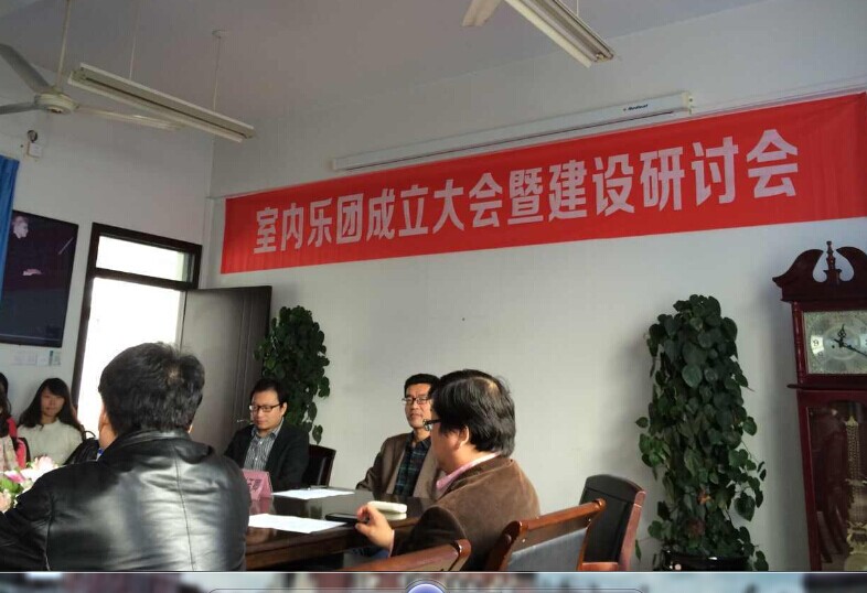 的乐器种类不多,想弄成大型的乐团有困难,成立室内乐团给学生提供平台,使学院在教导,展演,能提高专业的水准实践能力,还能和国内外专家进行讨论,对乐团的定位和发展要明确。接着,室内乐团团长胡锦超老师讲话,提出了现在成立室内乐团的几个问题:1.人太少,成立不太切合实际。 2.讲了室内乐的概念,重奏组是常见的组合方式。 3.组合方式有很多,不必太按常规,比如有小提琴与古筝的合奏,吉他与小提琴,钢琴与小提琴,钢琴与民乐的合奏等。 4.要多看,要有自己的想法,不要只按照书上的演奏。接着,由大提琴演奏家梁松发表自己的意见,说演奏,要有自己的风格,这样演出才更有意思,找好的搭档,很重要,搭档之间要相互欣赏,相互学习,大家都受益匪浅。接下来,嘉宾李小倩老师谈了自己的感想,她说当自己一个人演奏时,可以根据情绪自由的舒张,曲子的快慢也可根据情绪调节,而当和大型乐队合作时,就不能按照自己想法,要在乐曲整体的框架之内。作为一个钢琴演奏家,和其他乐器合作之后才知道缺什么,有些弦乐器能表达的,钢琴做不到,这时候就需要相互配合,吸取别人的优点,听取同伴的意见,这样才能演奏出更好的音乐。梁松老师现任上海爱乐乐团首席大提琴家,国家二级演奏演员,这次也来到了大会,提到在合作中大家的交流,碰撞能很好的提升自己的技术,乐器本身不重要,大家要有共同的目标,这样的合作才是成功的合作。