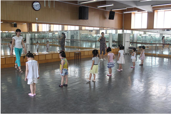 而另一边,舞蹈房,叶老师和卜卜老师把小朋友们排长队带进了音乐楼二楼舞蹈房,快节奏且欢乐的《蓝精灵》之歌的音乐响起来,经过前两次舞蹈课,害羞的,不想做动作的小朋友也都学起动作来,老师们表情亲切和蔼,越来越像像孩子们的“大朋友”,在小朋友们进步的同时,我们的“小”老师们也在慢慢成长。