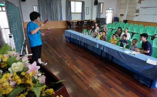 在电钢琴教室的潘洁洁老师则是准备好了几条动听的旋律,通过节奏型的学习,逐步了解旋律及其特点。在潘老师的耐心教导下,五个小朋友熟练地掌握了节奏的打法。接着就是旋律的哼唱和弹奏。老师以轮流制的方式教好每一位小朋友,直到熟练。