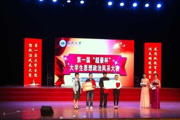 5月7日下午1点30分,由校党委宣传部、教务处、团委、马克思主义学院共同主办的温州大学第一届“超豪杯”大学生思想政治风采大赛在大学生活动中心育英大礼堂隆重举行。校党委宣传部、教务处、团委、马克思主义学院等相关单位负责人,各学院辅导员及学生代表约500人观看了比赛,全场座无虚席。