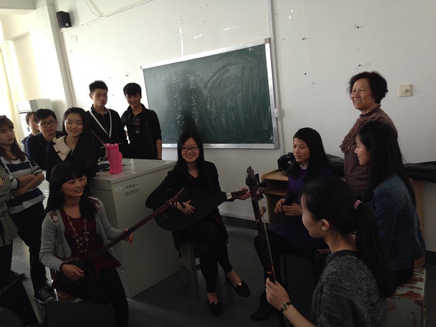 的学生们交流学习,听了他们独有的课程:南音。南音由三弦、二弦、洞箫、琵琶四种乐器演奏,用闽南方言演唱,同学们认真的记录笔记,聆听美妙的南音音乐;课堂上泉州师范学院的同学们为成人网站