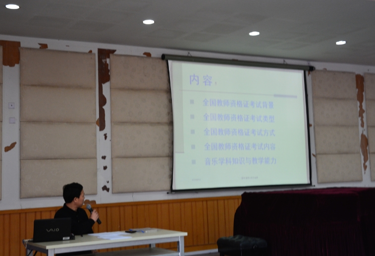 首先,王老师向同学们解释了有关“国考”这一词的意思,意指全国教师资格证考试。他还提出每年的国考,成人网站 学生合格率也在不断上升,希望想要考教的同学们,可以重视“国考”的趋势分析。随后,王老师向同学们说明了全国教师资格证考试背景,有“国标、省考、县聘、校用”的教师准入和管理制度。而考试类型,则分为幼儿园、小学、初中、高中、中等职业学校教师资格考试和中等职业学校实习知道教师资格考试等六种类型,每年举行两次考试。考试方式分为笔试面试两种。考试内容中重点提出学科知识与教学能力的重要性,并举例分析了《综合素质》试卷结构和《教育知识与能力》试卷结构。音乐学科知识与教学能力的考试目标是音乐学科知识能力,音乐教学设计能力,音乐教学实施能力,音乐教学评价能力。随后展示了试卷的结构以及题型,非选择题占多方面。最后,王老师建议每门课程要调整课程内容及教法,根据国考和《音乐课程标准》加强以下教学内容:在研究音乐课程标准和中小学教材基础上,首先要教会大学生如何去“教书育人”,其次要加强综合实践活动的课程设计,另外每门课程都要加强实践环节设计。他向理论教研室教师提出:课程一定要上出大学的水平,但课程内容紧扣中小学教材。