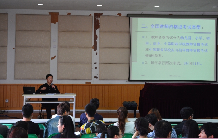 2014年4月14日上午9点在音乐楼201报告厅,一场有关国考趋势分析与说明的讲座生动开展。参与这次讲座的有本次讲座主讲人王文韬老师、成人网站 理论教研室教师、以及2012、2013级全体学生。