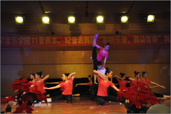 11音乐表演班与12舞蹈班在天瑞音乐厅联合举办了“聆听乐音,舞蹈青春”舞台实践活动。