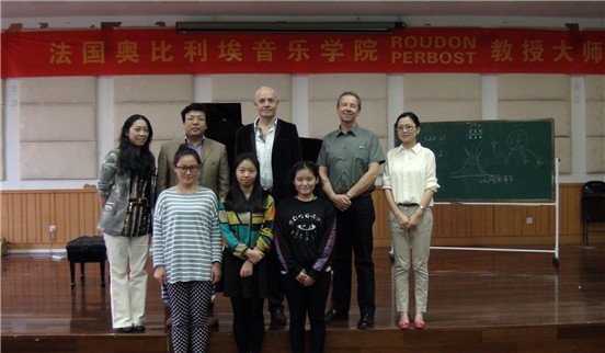 同学陳婷演奏的莫扎特《第三小提琴协奏曲》拉开帷幕,紧接着周莹同学演奏了圣桑的《哈瓦奈斯》,Roudon先生给予了她们精准的点评,然后,向斯贴演奏了贝多芬奏鸣曲《作品57号热情第三乐章》;易情情演奏了德彪西前奏曲第二册第8首《水中仙》,最后,在莫颖老师演奏的肖邦《第一钢琴叙事曲》结束了本次大师班活动,得到了Bruno PERBOST先生充分的肯定。大师风趣的教学,赢得了老师和学生的阵阵掌声。