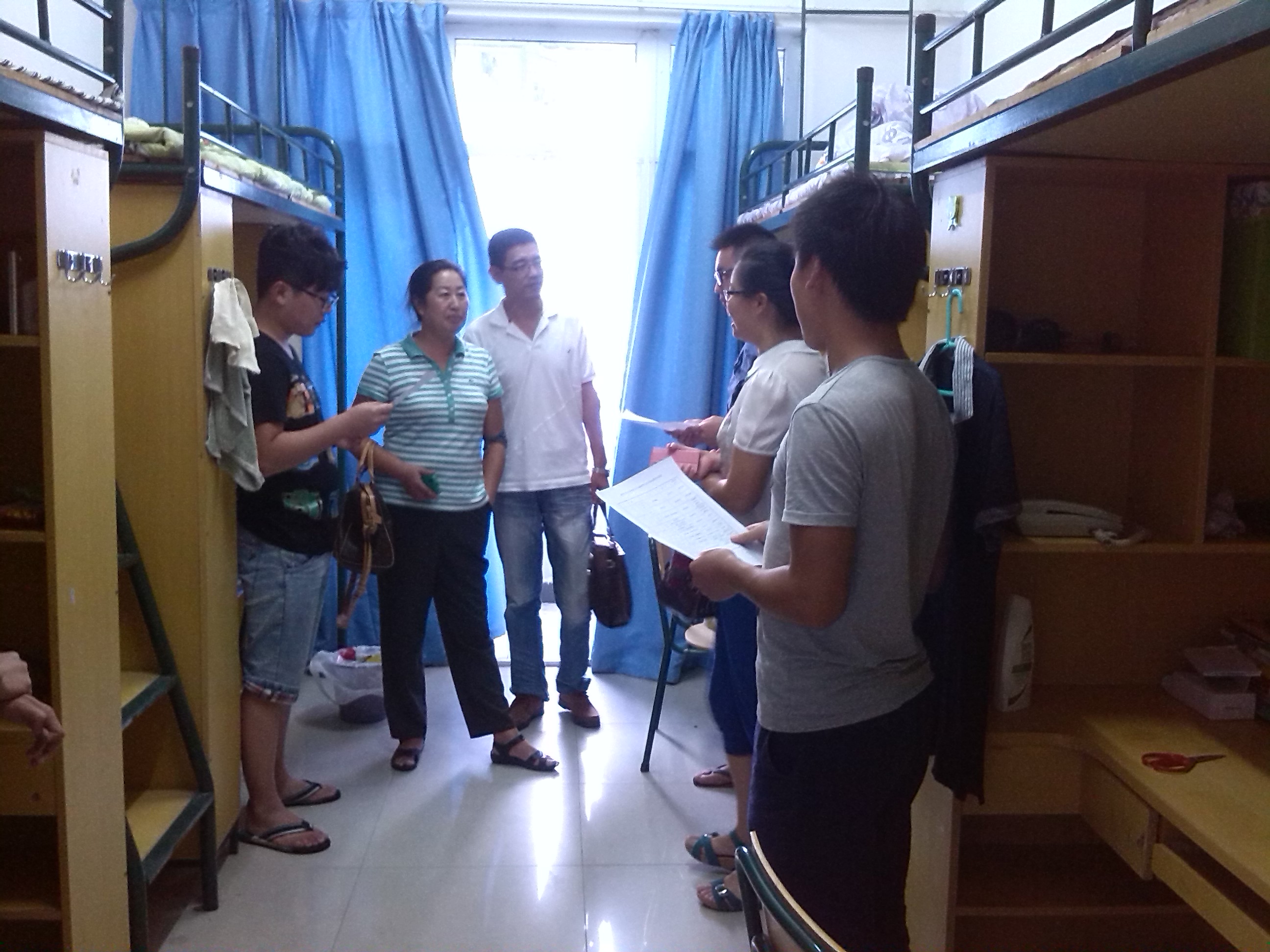 院领导、老师一行人员走进每间学生寝室,都亲切地与新生交谈,询问他们的基本情况、兴趣爱好以及到校后的感受,耐心地向他们介绍大学学习、生活的特点,解答新生提出的一些问题。同时,院领导还希望新生们能尽早适应大学生活,合理利用学校提供的各种良好平台,将专业知识的学习与综合素质的提高结合起来,全方位发展,愉快度过大学阶段的美好时光,不辜负家长和老师的期望。期间,院领导四处查看了新生宿舍的设施条件,悉心嘱咐同学们如果有设施使用不便利之处,可找宿管部门立即解决,并且指出一定要高度重视学生宿舍的安全问题,对于存在安全隐患的地方要及时排查清理,注意防火防盗。在与领导及老师的交流中,新生们表达了自己对大学生活的憧憬,希望自己的大学生活过得充实而有意义,也对院领导及老师及时的关心和帮助表示由衷的感谢。