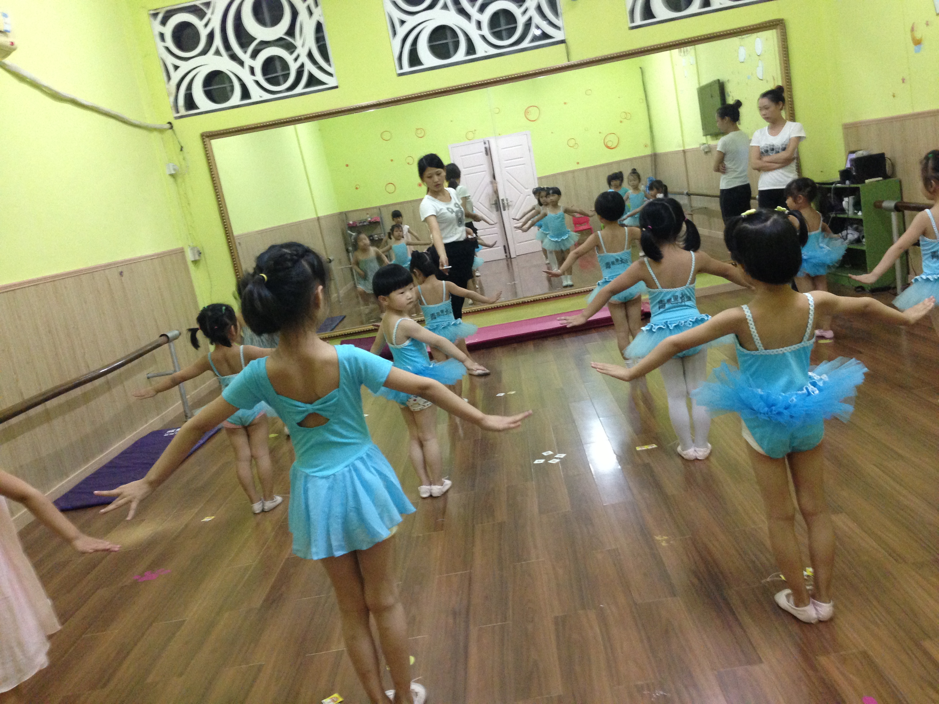 我们在总共把人分成了两拨,一部分同学在工会这边教小朋友舞蹈,一部分在商业街。工作性质其实都是一样的。