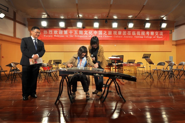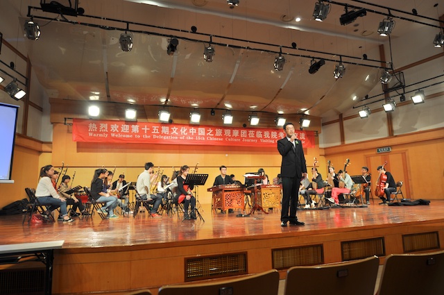 个国家和地区。在学院期间,观摩了成人网站 民乐团校庆节目的排练,赵玉卿院长向来宾介绍了学院的基本情况,用视频短片展示了成人网站 艺术周活动的精彩镜头。同时,学院部分同学向观摩团的成员们表演了古琴、二胡、古筝、琵琶和笙的独奏节目,互动环节,欢声笑语,气氛活跃!观看节目后,来自俄罗斯、美国、菲律宾、泰国的社团负责人纷纷表示,中国音乐文化源远流长,中华民族乐器魅力无穷,民乐团同学们精彩演出,让人大开眼界、深受启发!并热情邀请大家到国外交流、留学。