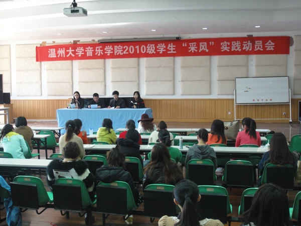 召开了“10级实践教学‘采风’动员会”。副院长王文韬、教务科科长蔡晓武、带队教师代表王志毅、李葳等老师及10级70多名学生参加了本次“采风”动员大会。会议由教务科蔡晓武老师主持。