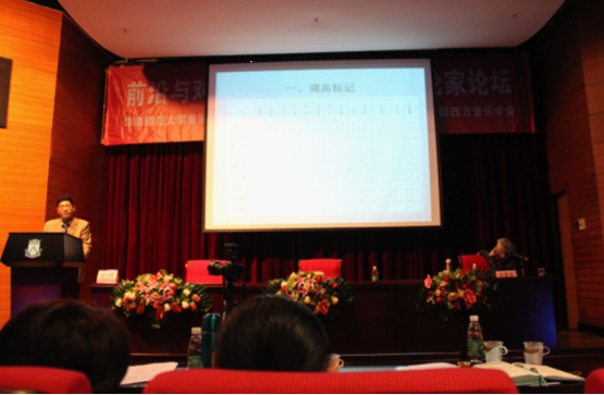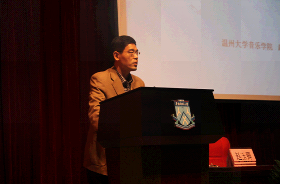 院长赵玉卿教授受邀参加了本次会议,并在大会上作了《关于姜白石俗字谱歌曲的宫调及音阶研究》的发言。关于对白石道人俗字谱歌曲的研究,目前在宫调问题上的分歧主要表现在黄钟律的绝对音高标准、调高标记以及音阶等各方面。论文从俗字谱歌曲的调高标记、音高标准、音阶等方面阐述,提出:在绝对音高标准问题上,认为采用北宋时期的黄钟律高标准,即以D为黄钟作为姜白石俗字谱歌曲的音高标准应该是最接近白石谱原貌的。姜白石俗字谱歌曲所采用的音阶则是“古音阶”的形式。发言后与其他专家学者进行了互动对话,得到与会者的肯定。