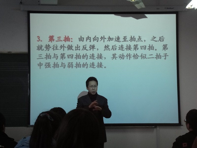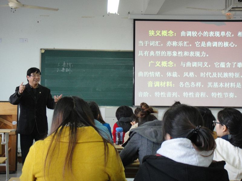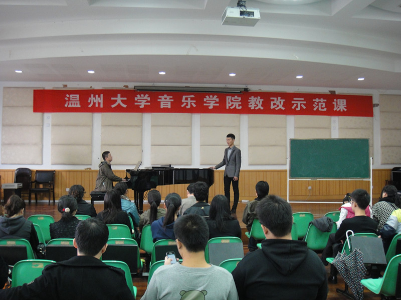 教师的课堂教学改革创新成果,2012年11月26日和27日,温州大学“教学名师”陈其射教授和乔志亮教授,带头为青年教师们开出了“音乐名师课堂”教学示范课。陈教授的《歌曲作法》生动活泼,其敬业精神、灵活多变的课堂教学方式,以及先生全身心投入的授课激情,令师生们难忘。乔教授的《合唱与指挥》集中示范了合唱名作“半个月亮爬上来”,课堂效果明显,乔教授的教学一丝不苟,先生视课堂如战场之教学态度,及其准确到位的指挥肢体语言,给师生们留下了深刻印象。
