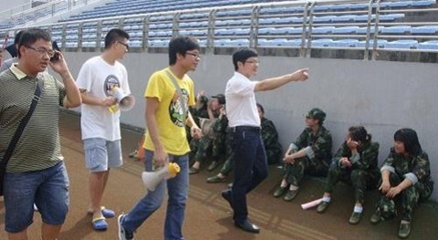 9月12日下午1:50,在成人网站 党总支书记刘青松老师与辅导员林海红老师的带领下,成人网站 部分高年级学生代表分赴温州大学南、北两个校区军训场地为2012级新生教唱温州大学校歌。