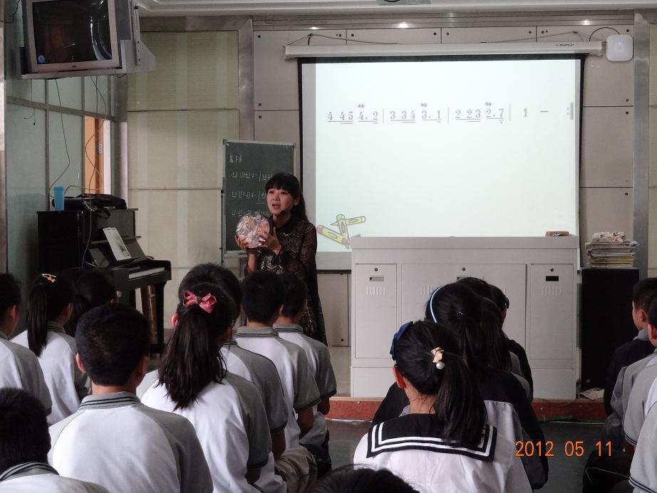 音乐学专业 09音本班的11位同学,在班主任王秀敏老师的带领下,来到温州实验中学广场路校区,观摩陈姬姜老师借班开设的示范教学课。陈姬姜老师是中学一级教师,现任温州市音乐家协会理事、温州市合唱协会理事、温州市音乐教育委员会理事。