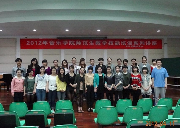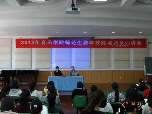 2012年师范生教学技能培训系列讲座在音乐楼201学术报告厅隆重开讲,第一场由温州市教育教学研究院的钱瑞华老师主讲。她是一位专业强,教学经验、比赛经验丰富的优秀教师,很多同学都慕名而来。此次听讲座的不仅有09音本的全体同学,还吸引了09音表本、08音本以及10音本和11音本的不少同学前来听讲,整个报告厅座无虚席。本次系列讲座,也是09音本组织承办的重要团日活动。