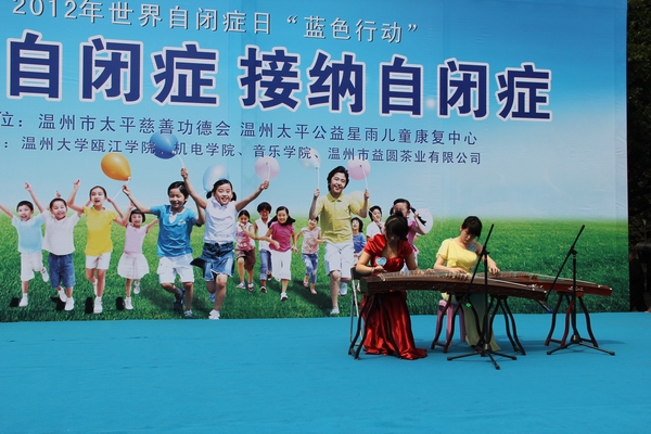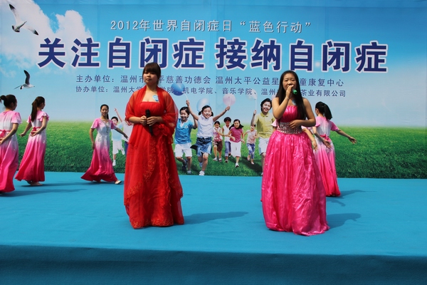 志愿者协会和温州大学瓯江学院人文与外国语分院青年自愿者协会,温州大学机电工程学院青年自愿者协会,温州大学橄榄枝公益协会和温州市益圆茶业有限公司一起举办了关注自闭症,接纳自闭症的活动。我们的志愿者给大家表演的歌伴舞和古筝合奏节目,赢得了大家的阵阵掌声。通过这次活动我相信会有更多的人去关爱关心他们。会有更多的人去理解他们,帮助他们。文/卢依