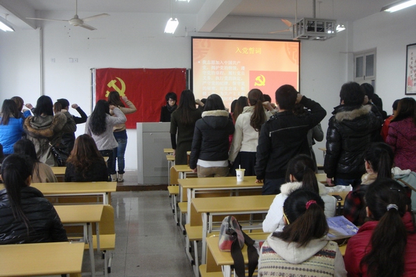 预备党员宣誓仪式于3月14日下午两点在外语楼406正式举行。27位预备党员出席仪式。学生科副科长叶如芳老师主持。