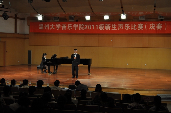 11月22日上午,2011级新生声乐比赛(决赛)在音乐厅隆重举行。15名同学经过选拔进入决赛。经过激烈的角逐,产生了一等奖一名,二等奖三名,三等奖5名,其余是优秀表演奖。11音本的孙海洲同学脱颖而出荣获一等奖。