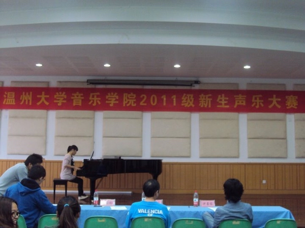 11月16日下午,成人网站 在北校区音乐楼201举办了2011级新生声乐大赛。成人网站 李兵、叶文辉、刘玉亭担任评委。本次比赛共有26名11级新生报名参加。比赛中,同学们各展风采,获得了评委老师和同学们的好评,最后有15名同学进入决赛。