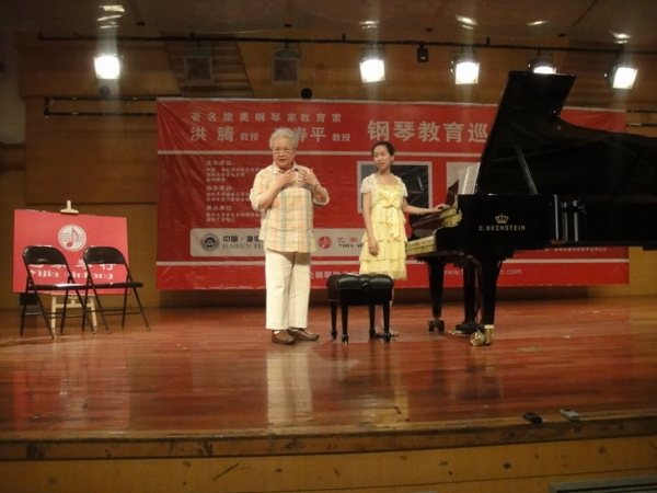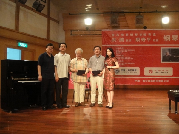 7月2号上午,著名旅美钢琴家教育家洪腾教授和裘寿平教授莅临成人网站 教学。常务副院长李杰鹏为两位教授颁发聘书。10音本的林璇璇和缪芸,09音本的王旻驹等同学进行现场演奏,洪腾教授和裘寿平教授都进行了细心地指导。两位教授分别讲述了自己的经验和亲生经历,同学们踊跃发言提问,现场气氛活跃。