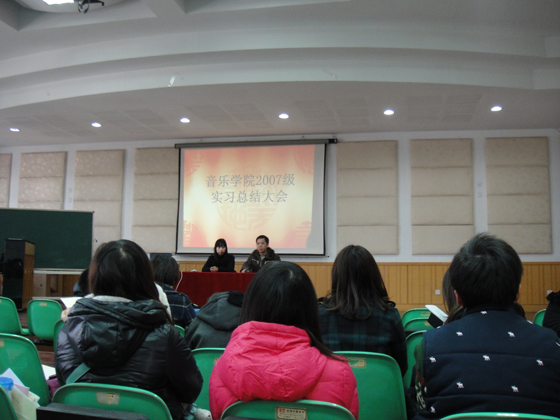 会议首先由王志毅副院长致词,他充分肯定了07级实习的成绩,特别表扬了音本班的同学,认为大家能克服种种困难,认真细致地完成实习工作,让自己的实践水平大大上了一个台阶,为学院增光。总之,此次实习活动开展得非常顺利,各个环节都有条不紊的进行,各个实习学校都对我们学生赞不绝口,为我们日后实习工作的进行奠定了坚实的基础。