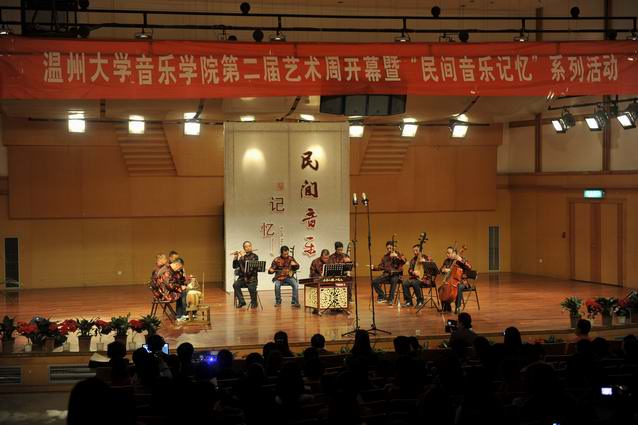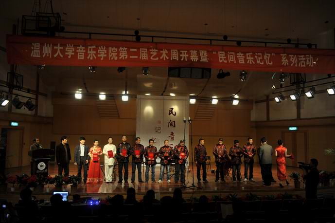 第二届艺术周开幕暨“民间音乐记忆”系列活动启动仪式在温州大学北校音乐厅举行,学校人文社科处等部门领导、学院全体师生出席了仪式。本届艺术周以“浙南区域音乐文化数据库”的建设为依托,以非物质文化遗产的保护和传承为目的,凸显“守望越人遗风,传承东瓯文化”主题。