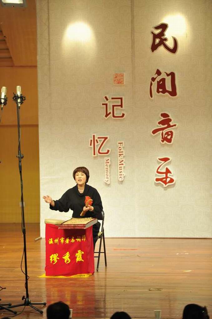 艺术周开幕式结束后,“民间音乐记忆”系列活动第一场表演粉墨登场。浙南民间音乐专家和民间音乐传承人为我们带来了文成吹打《什景》、苍南渔鼓《计划生育好》、平阳木偶戏《耍猴》、温州鼓词《神童放牛》、单挡布袋戏《景阳岗》等五个精彩节目。这些节目勾起了台下观众的童年回忆,精彩纷呈,引得台下叫好声一片,每个节目结束观众席都响起久久不息的掌声,可见民间艺术独特的魅力。