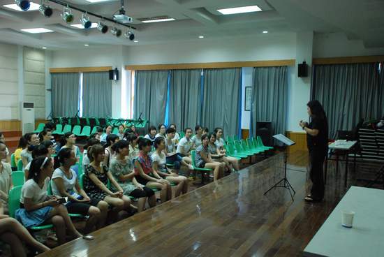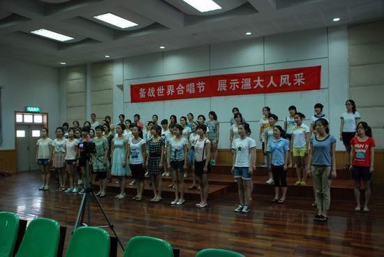7月6日下午,青年指挥家、钢琴家,上海成人网站 指挥系副主任、副教授王燕老师莅临成人网站 指导合唱。校党委副书记牟德刚、校团委副书记杨立淮一行再次莅临成人网站 ,并与成人网站 党总支书记刘青松、常务副院长李杰鹏一起欢迎王燕老师的到来,温州市合唱团的几位领导也亲临排练现场。