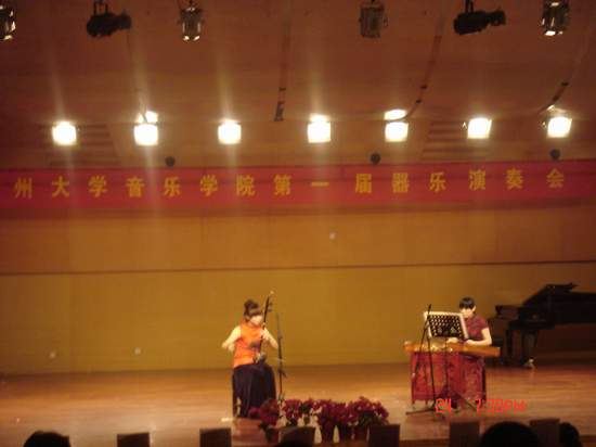 此次器乐演奏会所涉及的器乐有琵琶、二胡、古筝、扬琴,还有小提琴;演奏形式多样,有齐奏、独奏、独奏加伴奏、重奏等。07、08、09的学生都带来了精彩的表演,如琵琶独奏《火把节之夜》、古筝独奏《孔雀东南飞》、二胡独奏《豫北叙事曲》、古筝齐奏《土耳其进行曲》、二胡齐奏《北京有个金太阳》、小提琴二重奏《波尔卡舞曲》等共14首作品。