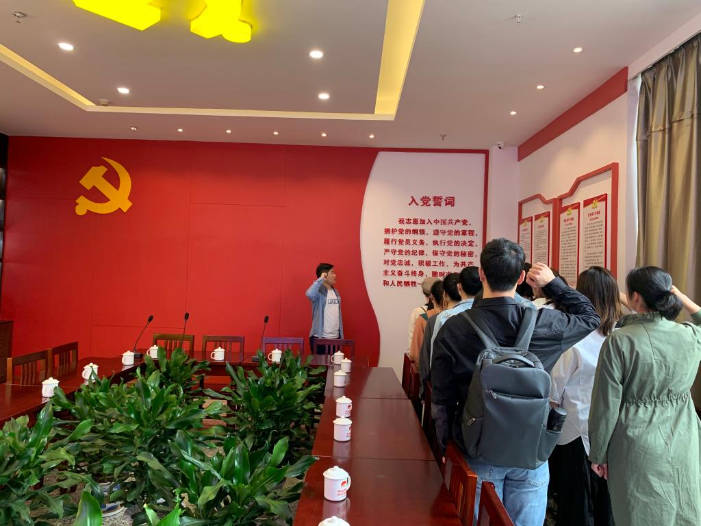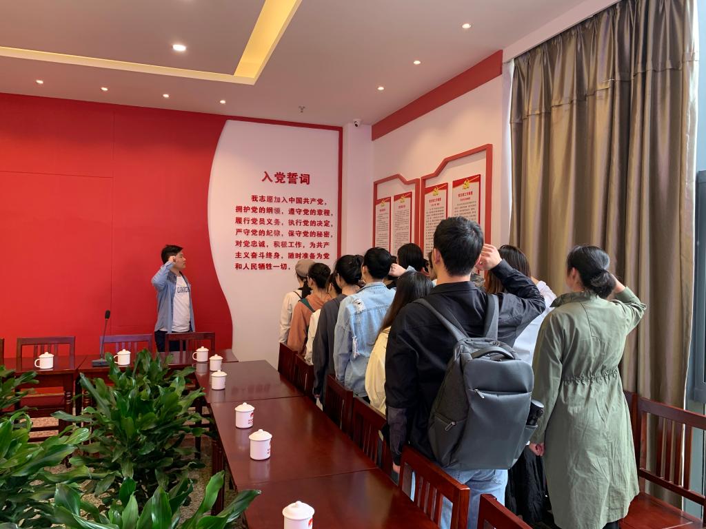 最后,老师和同学们在“瓯江红”党群服务中心会议区重温了入党誓词,再一次体会到了作为一名共产党员的责任感和使命感,在今后的学习和工作中一定以昂扬的士气、进取的心态和创先争优的精神践行入党誓词,为党的发展贡献一份自己的力量。
