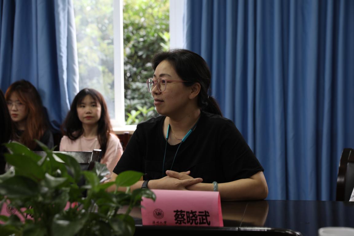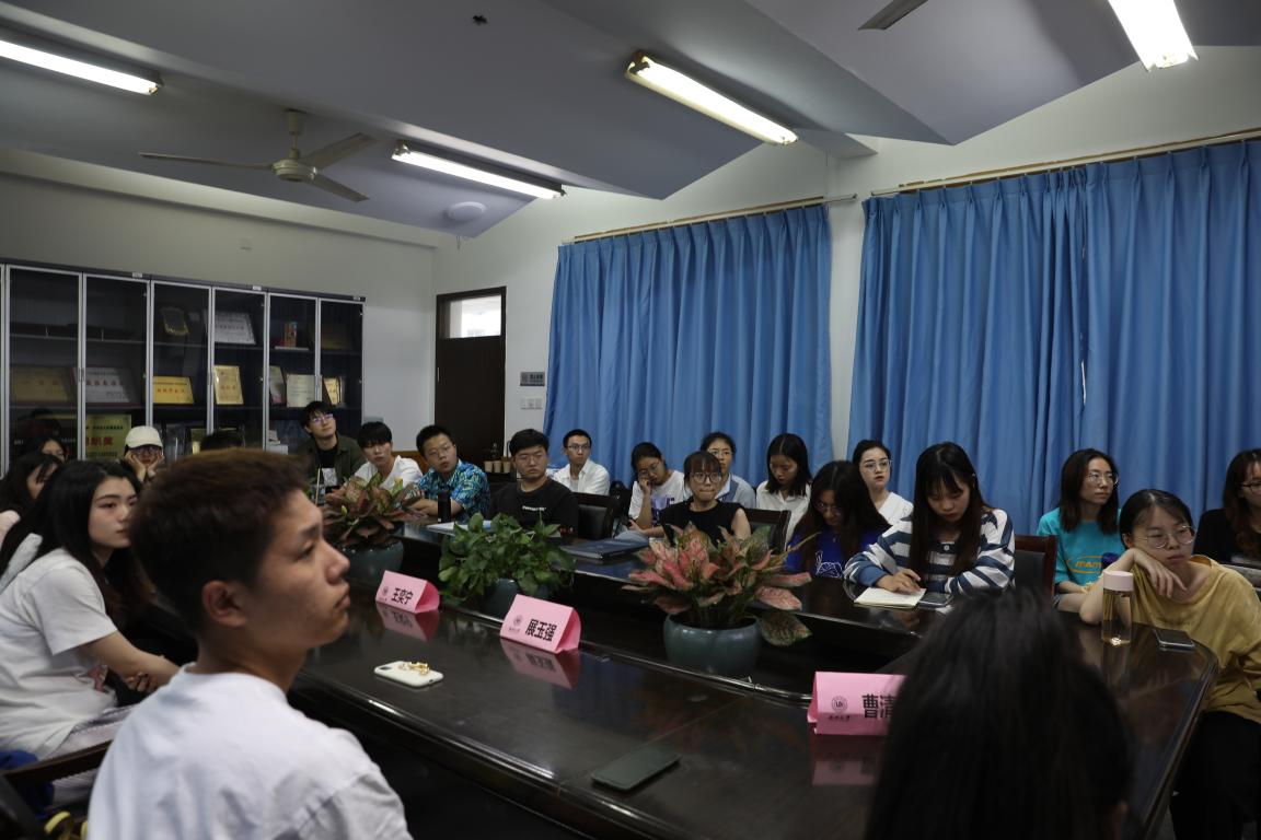 2017级考研成功上岸的四位学姐学长。到场的还有学院党委副书记蔡晓武老师,学工办辅导员曹清清老师以及各班有考研意向的同学们。